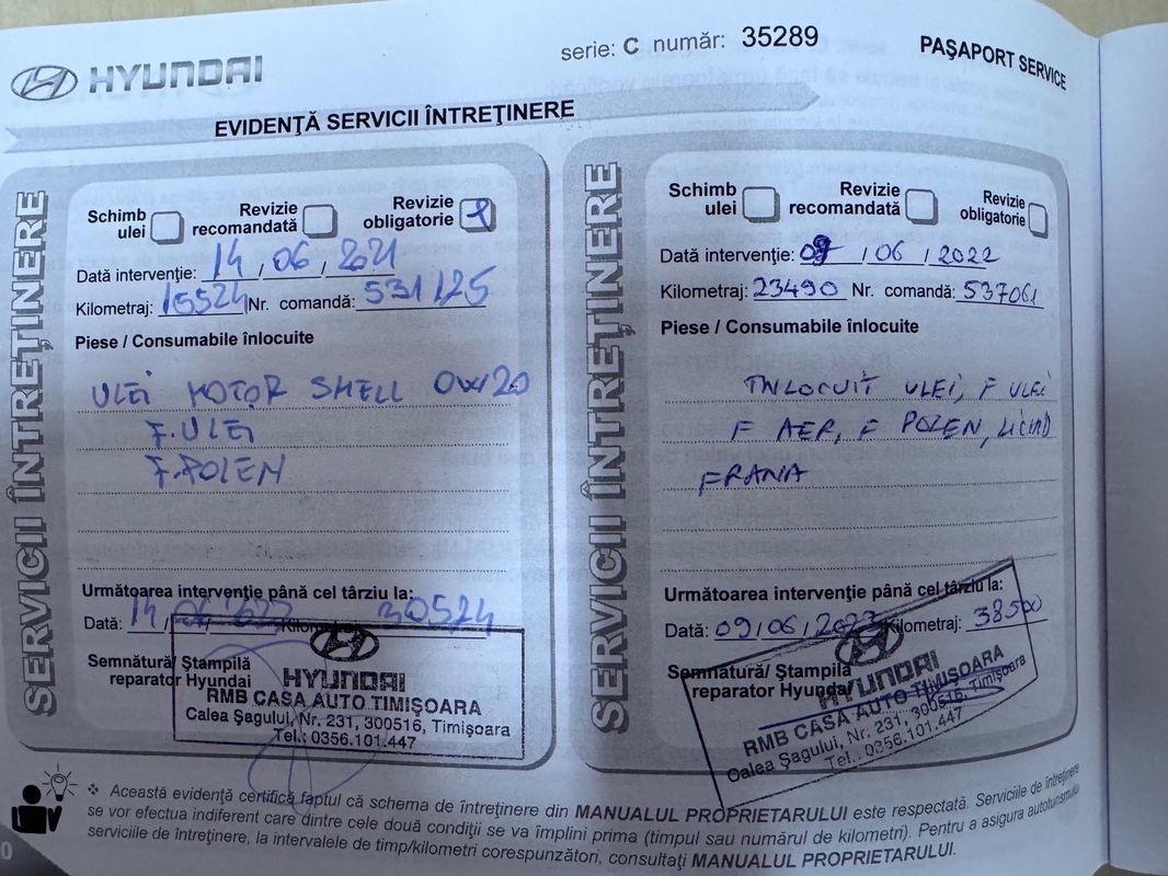AV8 va oferă la vânzare auto HYUNDAI I20 1.2 MPI 84 CP MAN 5 TREPTE AN FABRICATIE - 2021 PRIMA INMATRICULARE - 02.2021 SERIE SASIU : NLHBM51HAMZ004056 ITP valabil pana la data: 10.01.2026 Rulaj certificat si garantat contractual SPECIFICATII SI DOTARI Istoric service - ISTORIC COMPLET IN RETEAUA HYUNDAI ABS/ESP Aer conditionat Airbag șofer, pasager și lateral Computer bord Cruise Control ( pilot automat cu funcție de frânare ) Chei disponibile: 2 buc Conectare telefon prin Bluetooth si USB Fixare ISOFIX pentru scaun copil Geamuri electrice fata si spate Hill Start Assist Inchidere centralizata cu telecomanda Inteligent Speed Limit Warning ( avertizare privind depășirea limitei de viteza ) Lumini de zi LED Lane Assist ( asistenta la pastrarea/ părăsirea benzii de rulare ) Oglinzi retrovizoare reglabile electric si incalzite Radio și sistem audio integrat Proiectoare ceata Scaun șofer reglabil pe înălțime si lombar Sistem Start&Stop Senzori de presiune in pneuri Servo directie asistata electric Tapițerie stofa Transmisie manuala 5+1 trepte Volan si schimbător de viteze îmbrăcat in piele Volan multifuncțional Volan reglabil pe adâncime si înălțime Consum mediu: 5.4 l/100 km Emisii CO₂: 117 g/km Norma de poluare: Euro 6 INFORMATII PRET Prețul cuprinde TVA deductibil Cursul EURO este calculat la cursul BNR + 1% din ziua efectuării plății Auto este eligibil pentru finanțare atât pentru persoane fizice cât si persoane juridice. INFORMATII REFERITOARE LA GARANTIE GARANTIA oferită autoturismului este de 12 luni sau 15000 km Se oferă OPTIONAL posibilitatea extinderii GARANTIEI pana la 36 luni sau 40000 km SERVICII DE LOGISTICA OFERTITE Se oferă NUMERE PROVIZORII pentru o perioada de 90 de zile pentru auto importate. Se oferta serviciul de livrarea auto pe platforma in toată tara, GRATUIT in Mun București si Jud ILFOV. Consiliere înmatriculare auto. Notă informativă: • Informațiile prezentate în acest anunț sunt cu titlu orientativ. Pot exista erori de redactare sau omisiuni involuntare privind dotările, performanțele motorului, capacitatea cilindrică, transmisia sau alte caracteristici tehnice.Pentru confirmarea completă a dotărilor, vă recomandăm verificarea acestora în baza seriei de șasiu la reprezentanța mărcii sau la fața locului.Detalii suplimentare pot fi oferite și telefonic.